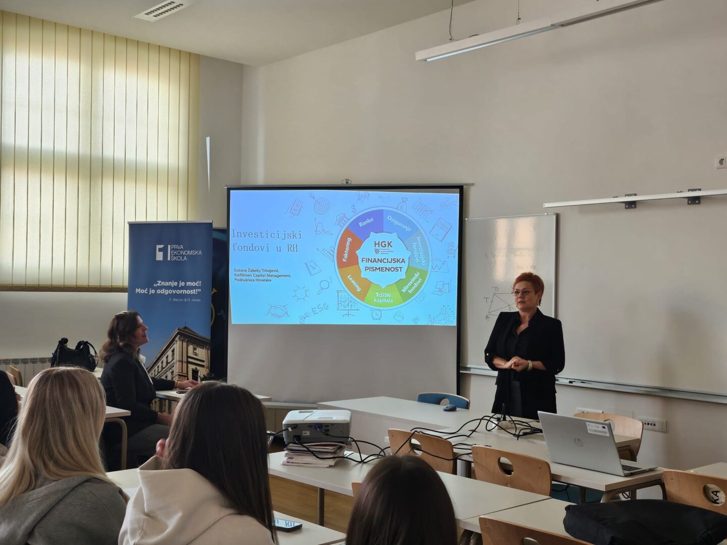 U Prvoj ekonomskoj školi Zagreb, 17. ožujka 2026. održana je edukacija o financijskoj pismenosti u sklopu Svjetskog tjedna novca, na kojoj je sudjelovalo 60 učenika.