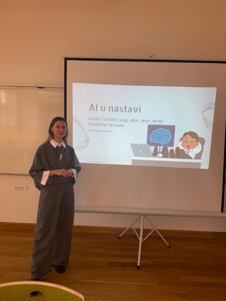 Naše gošće predavačice, prof. Lucija Tustanić i prof. Željka Župan Vuksan iz Gimnazija Sesvete, svojim su stručnim, zanimljivim i interaktivnim pristupom potaknule razmjenu iskustava, raspravu i promišljanje o izazovima i mogućnostima u nastavi.